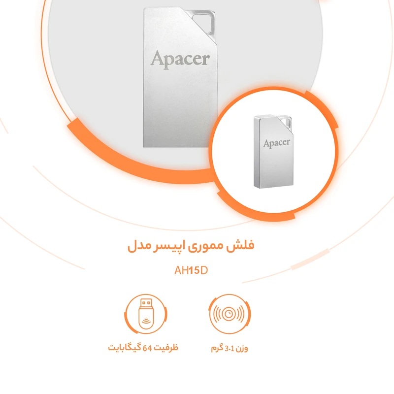فلشمموری 64 گیگابایتی «AH15D» شرکت «اپیسر»، یک فلشمموری زیبا و مقاوم است. این محصول از رابط USB3.2 بهره میبرد. برای انتقال اطلاعات و یا همراه داشتن فایلهای ضروری اولین و سریعترین راهی که به ذهنمان میرسد استفاده از فلشمموری است. فلشمموریها امروزه در ابعاد و طرحهای مختلفی روانه بازار میشوند و همین امر انتخاب را برای ما سختتر میکند و مارا با انبوهی از طرحها و مشخصات مواجه میسازد. دارای جای بند اویز میباشد که خطر گم شدن آن را هم کاهش میدهد. از دیگر مزایای این مدل امکان چاپ لیزر بر روی دو طرف فلش را دارامیباشد جنس بدنه این فلش مموری از فلز میباشد که بسیار مقاوم است این فلش مموری با طراحی زیبا و سایز فوق العاده کوچکی که دارد بهترین انتخاب برای تمامی سلیقه ها میباشد