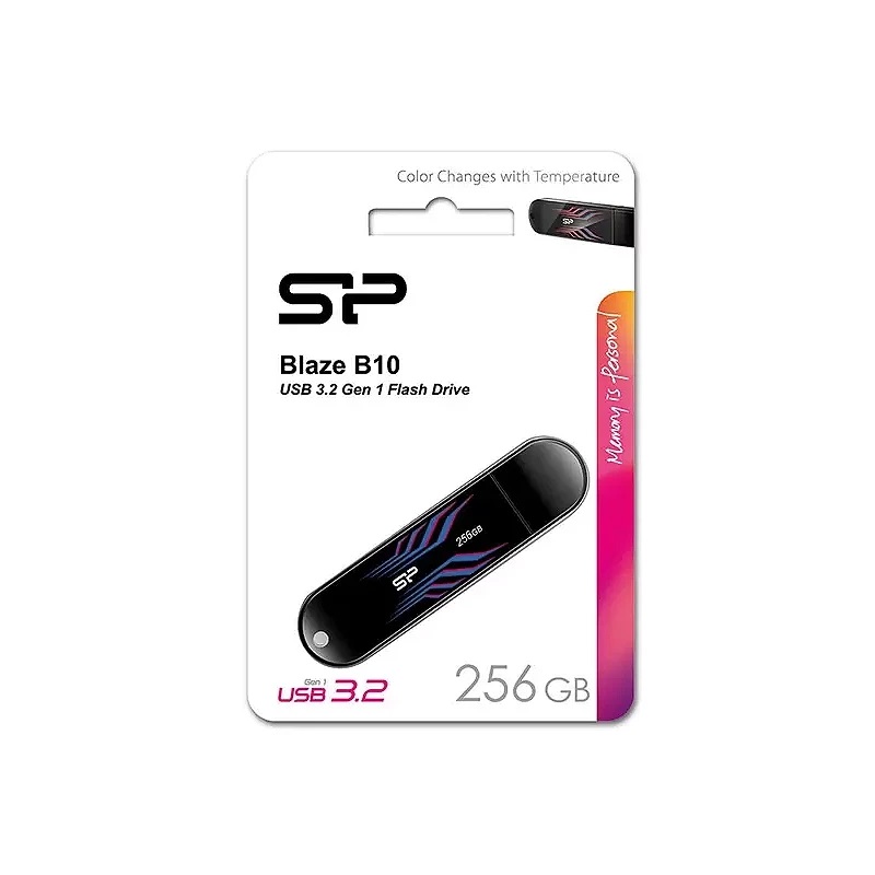 Blaze B10 از سایر رقبایش کاملاً موفق بوده است.ضمنا در بدنه این فلش مموری یک نشانگر LED قرار دارد تا وضعیت انتقال اطلاعات و عملکرد فلش مموری را به شما نمایش دهد. قسمت بالا و پایین B10 اندکی مخروطی شکل بوده و یک حلقه در قسمت بالای آن تعبیه شده است که میتوان آن را به جا کلیدی آویزان کرد. در واقع سیلیکون پاور در طراحی ظاهری این درایو از جوهر حرارتی استفاده کرده است که شرایط کاری آن را به شما نمایش میدهد. به طور دقیقتر، وقتی این فلش به سیستم متصل نیست یا در سیستم از آن استفاده نمیکنید، طرح روی بدنه فلش به رنگ آبی دیده میشود، اما وقتی از این فلش استفاده میکنید و آن را تحت فشار مداوم قرار میدهید، طرح روی بدنه فلش با افزایش دمای آن (به طور دقیقتر وقتی دمای آن به بیش از 31 درجه سانتیگراد میرسد) به تدریج به قرمز تغییر رنگ میدهد.