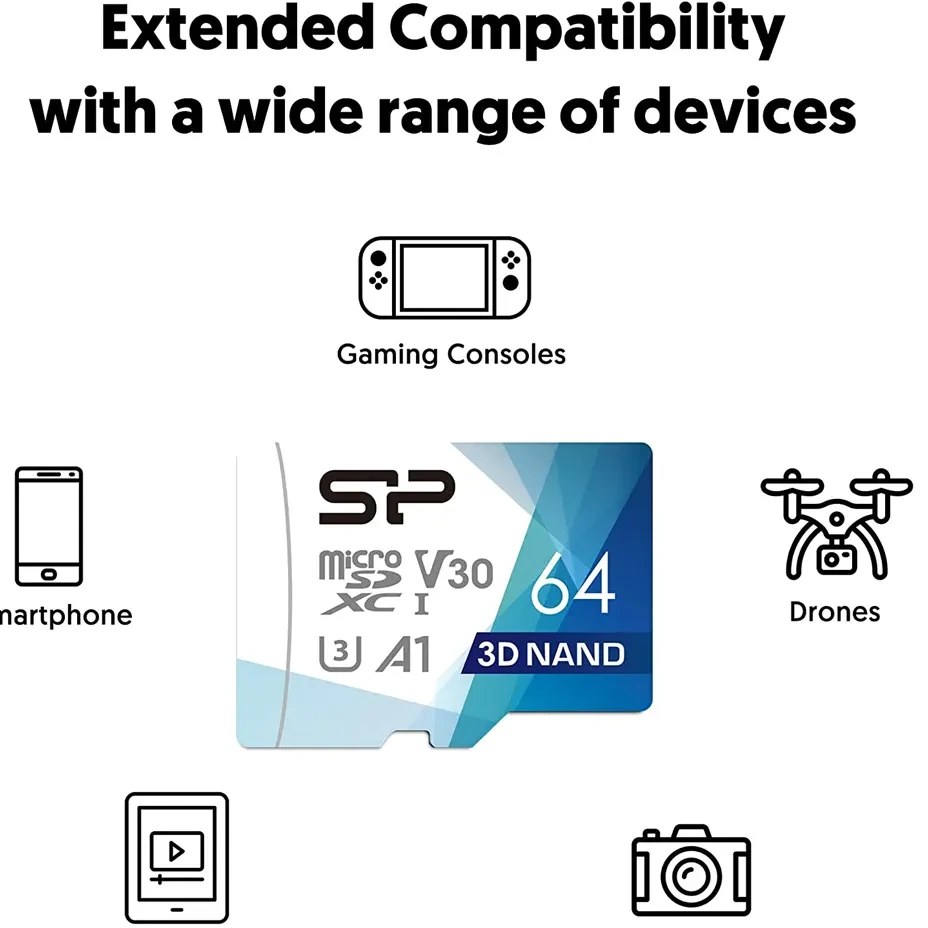 - استفاده در انواع گوشی های هوشمند، تبلت ها، دوربین ها و دستگاه های دیگر با درگاه microSD