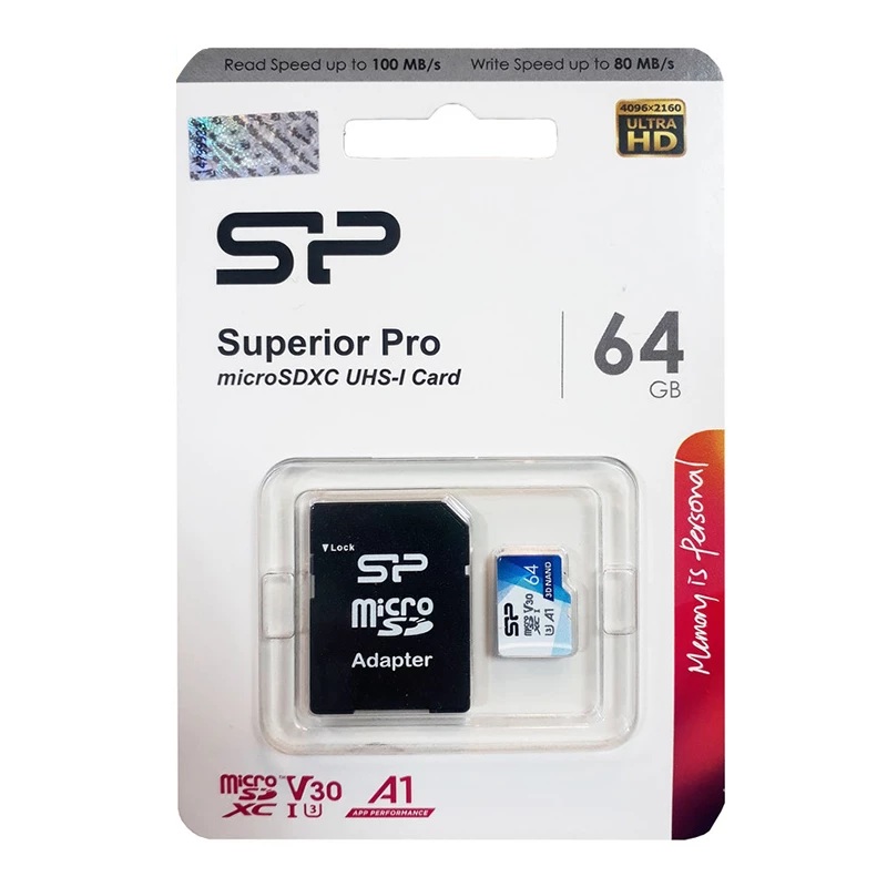 کارت حافظه microSDXC سیلیکون پاور مدل Superior Pro V30 با ظرفیت 64 گیگابایت، یک کارت حافظه با استاندارد سرعت UHS-I U3 است که سرعت خواندن اطلاعات تا 100 مگابایت بر ثانیه را ارائه میدهد. این کارت حافظه برای ذخیرهسازی انواع فایلها از جمله عکس، فیلم، موسیقی و اسناد مناسب است.